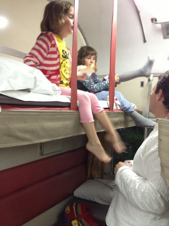 Pe tren, fetele au fost foarte incantate ca se pot catzara pe paturile din compartiment – a fost prima data cand ele au mers cu trenul, asa ca pentru ele a fost o experienta de neuitat. Am dormit toata noaptea, iar dimineata am ajuns odihniti in gara din Chiang Mai, unde fetele au batut gongul ca sa ne anunte sosirea 🙂